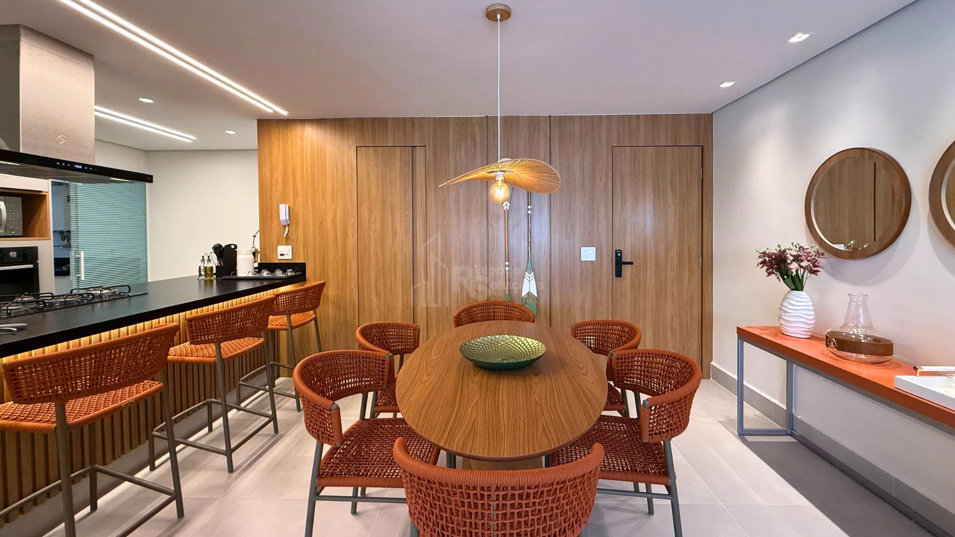 A principal vantagem é a sensação de ganho de metros quadrados e a eliminação de barreiras, permitindo que a área social se torne muito mais espaçosa e fluida.