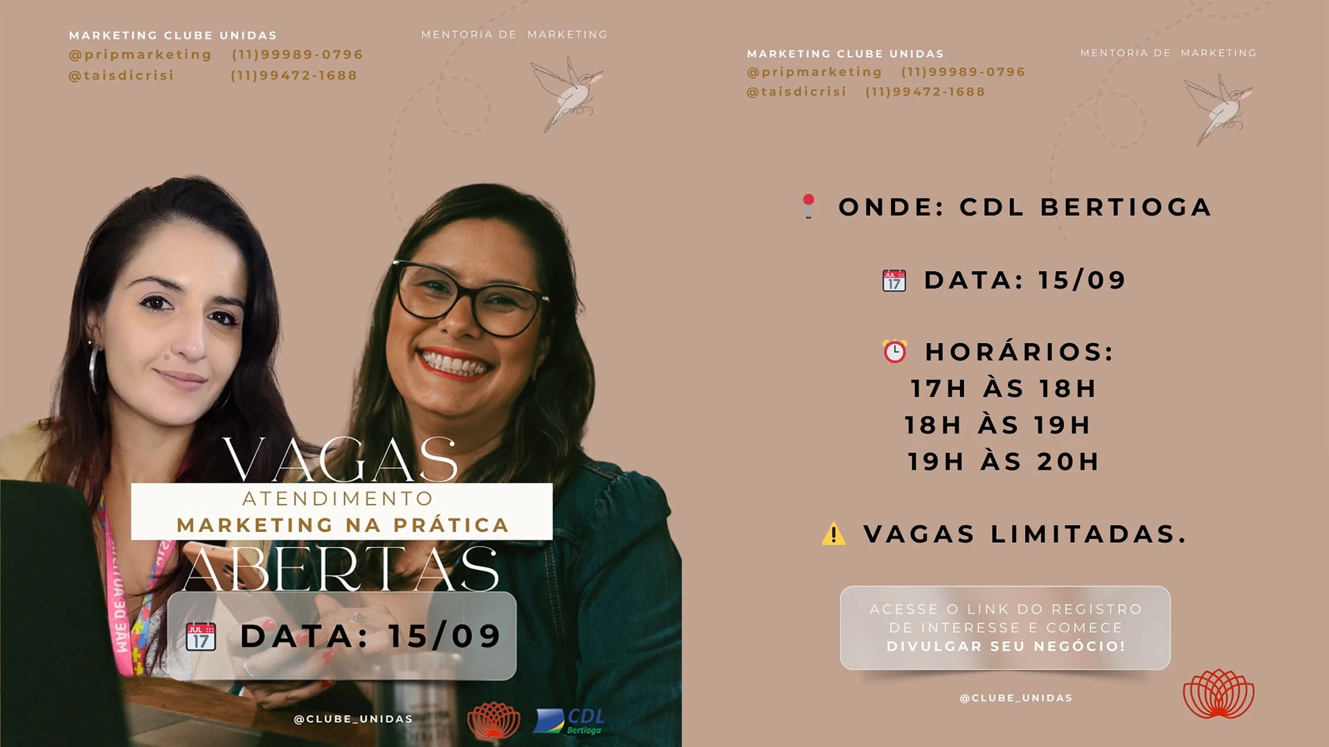 As vagas são limitadas! Digite QUERO para receber o formulário e garantir a sua.